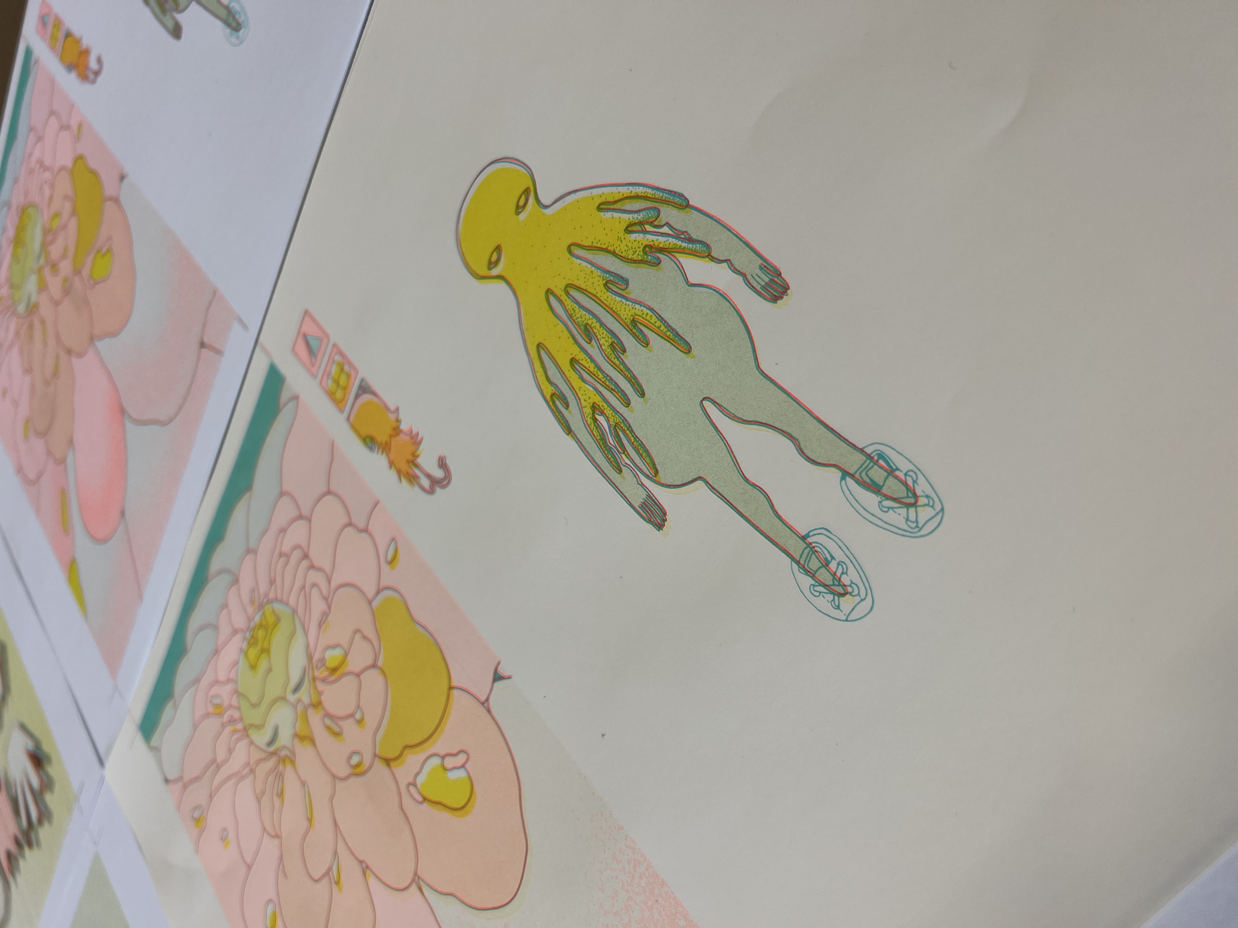 i hand drew each page first with ink and graphite, and then scanned and traced it all again in illustrator to create a cleaner look for the riso.